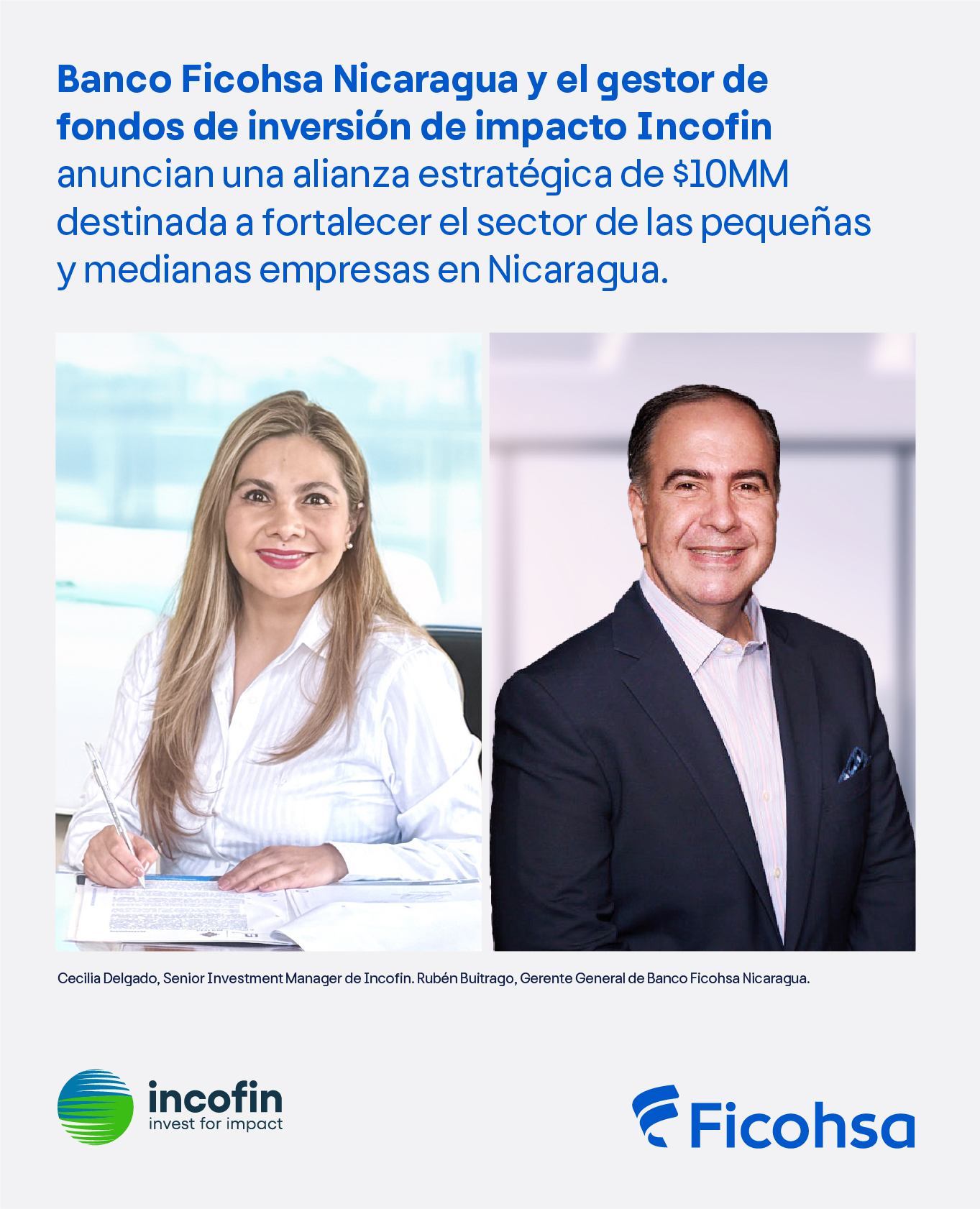 Banco Ficohsa Nicaragua y el gestor de fondos de inversión de impacto Incofin Investment Mangement anuncian una alianza estratégica destinada a fortalecer el sector de las pequeñas y medianas empresas en Nicaragua, con un enfoque especial en aquellas lideradas por mujeres.
