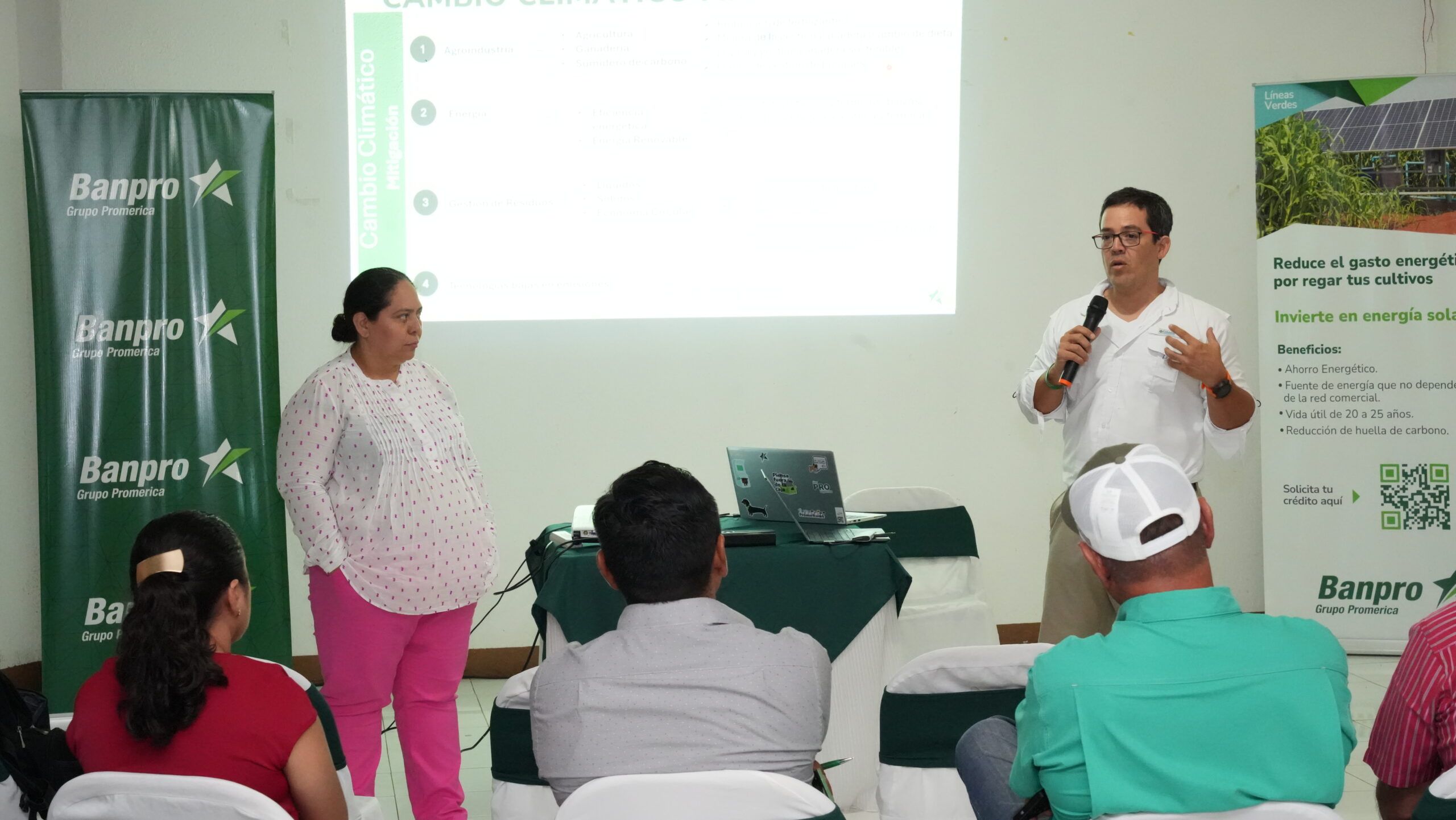 Impulsar el riego a través de bombeo solar en el sector agrícola es uno de los objetivos de Banpro Grupo Promerica, para que los productores no se vean afectados por el cambio climático y a la vez tengan ahorros significativos en su facturación eléctrica, así lo confirmó el Ing. Jorge Incer, gerente de sostenibilidad de la entidad bancaria, durante una reunión con productores del sector de arroz del municipio de Sébaco, Matagalpa.
