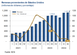 El titular del Ministerio de Hacienda y Crédito Público, Bruno Gallardo, manifestó que las proyecciones económicas de Nicaragua hasta 2028, se consideran estables, hay equilibrio fiscal y crecimiento en todos sectores, entre ellos, las reservas internacionales y el envío de remesas, detalló que, durante enero, ingresaron 448 millones de dólares en remesas. “Estamos hablando de un crecimiento del 22 por ciento en comparación a enero del año pasado”.