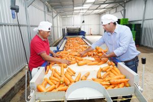 Además, el productor ha invertido en infraestructura como un centro de acopio y maquinaria para lavado de vegetales, lo que permite mejorar la calidad del producto que llega a las tiendas.